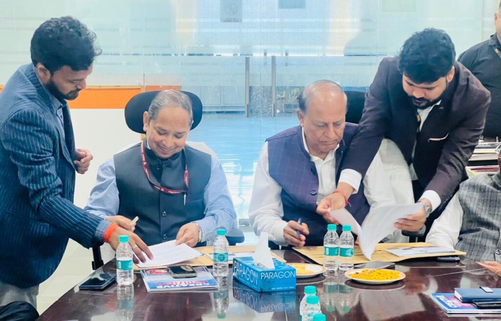 During the MoU signing Mr. Subhash Jagga ji, Mr. Panna Lal ji, Mr. Vikas Anand Soni ji, Mr. Narinder Chhikara ji, Mr. Sat Bhusan ji, Mr. Vipin Malhotra ji, Mr. Sunil Garg ji, Mr. Desraj ji, Mr. Kanwar Bhan ji, Mr. Amit ji, Mr. Saurabh Gupta ji, Mr. Abhay Jain ji, Mr. Charanjeet Ji, Mr. Devansh ji, and Mr. Siddharth Dubey were presented.
